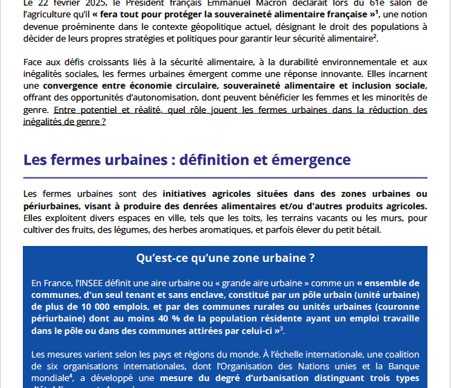 Découvrez la fiche technique rédigée par Flavie Seigneurin sur les fermes urbaines et leur rôle dans la réduction des inégalités de genre, face aux défis croissants liés à la sécurité alimentaire, à…