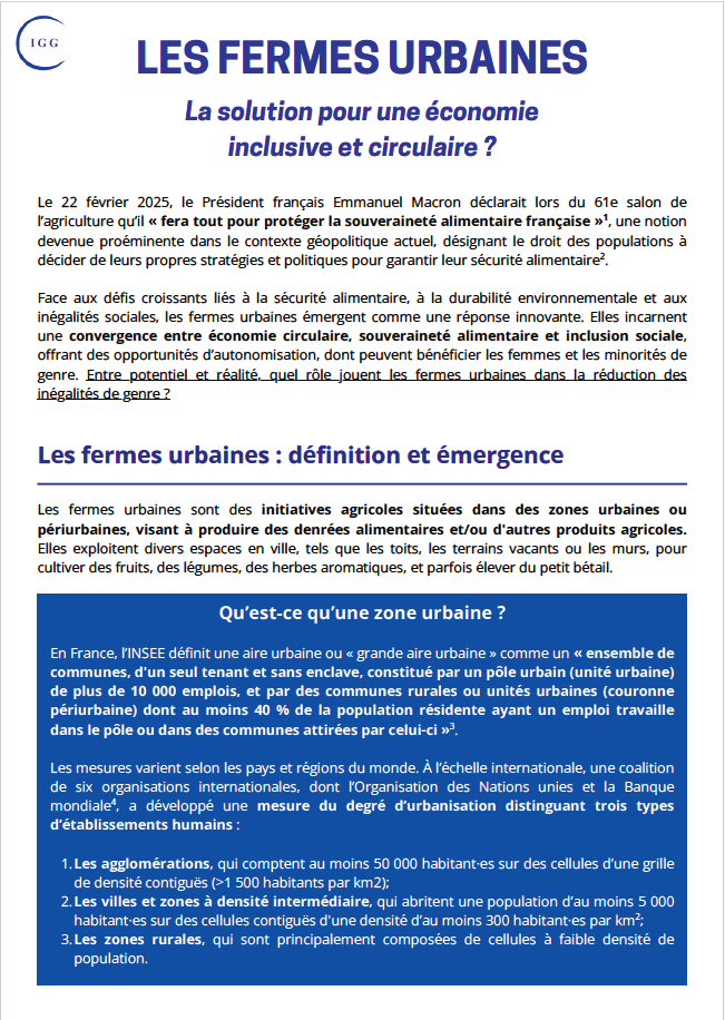 Pour citer cette production : Flavie Seigneurin, « Les fermes urbaines : la solution pour une économie inclusive et circulaire ? », 20.01.2026, Institut du Genre en Géopolitique.